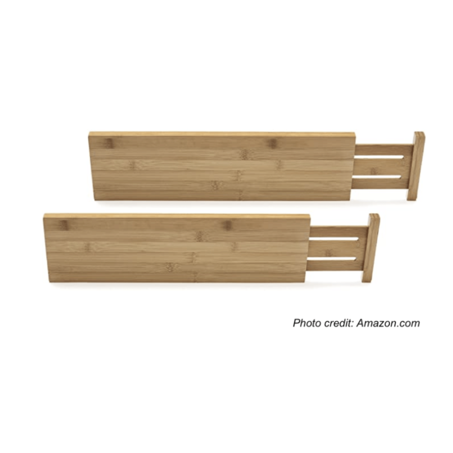 These bins sport wheels and—at 17.5″ long—fit perfectly in deep pantries or undersink cabinets. Adjustable interior dividers allow customization for your sorted categories.